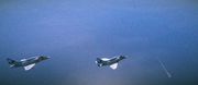 Salimos divididos en 3 parejas. La idea es encarar los bombarderos entrantes. Decido que el grupo de Pepper y Tano sean quienes derriben a los bombarderos mientras el resto nos mantenemos atentos a los cazas de escolta. Una vez detectados los bombarderos enemigos ordeno al par liderado por Pepper que ataque, pero esto se demora demasiado y empiezo a temer que los bombarderos lleguen a distancia para disparar misiles contra la flota. Mientras sigo la formación por el norte y Tucán por el sur, veo que los Tu enemigos rompen la formación y empiezan a lanzar chaff. La situación cambia por completo y ordeno un ataque generalizado. Goye lanza un misil que queda corto contra un Tu. Me pasa lo mismo. Vuelvo a lanzar más cerca un segundo misil que impacta. Lo termino con cañones. Nos reagrupamos sobre la FT y enganchamos.