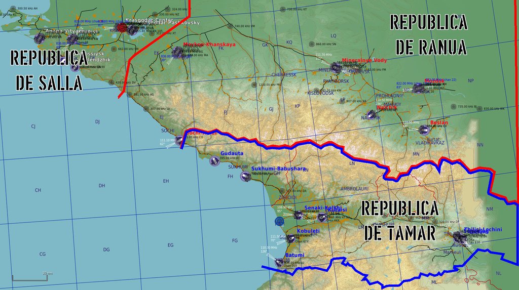 Se recuerda que todos los mapas entregados para las misiones (F10) cuentan impresos con la ruta y TACAN de cada reabastecedor. También, las tres bases operativas para el GAE (GUDAUTA, KUTAISI y VAZIANI) están marcadas y con sus respectivas frecuencias TACAN.